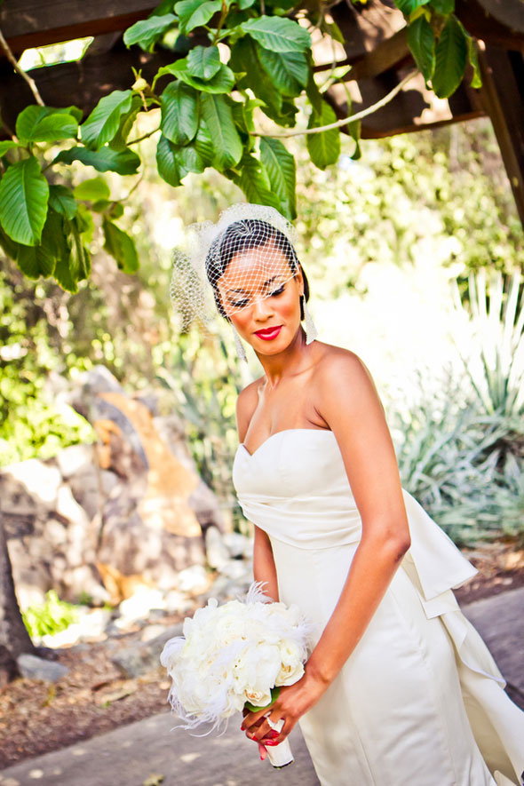 Genise + Troy, hello gorgeous! This couple is seriously stunning, just like their wedding at the Los Angeles Arboretum. Everything was simple and classic, yet still manages to have a major wow factor. I love Genise’s whole look, from the bold rep lip to the sparkly heels and birdcage veil. If she isn’t a model already, she should seriously consider it! This incredible day was captured beautifully by Zoom Theory Photography. Now, on to the pictures…